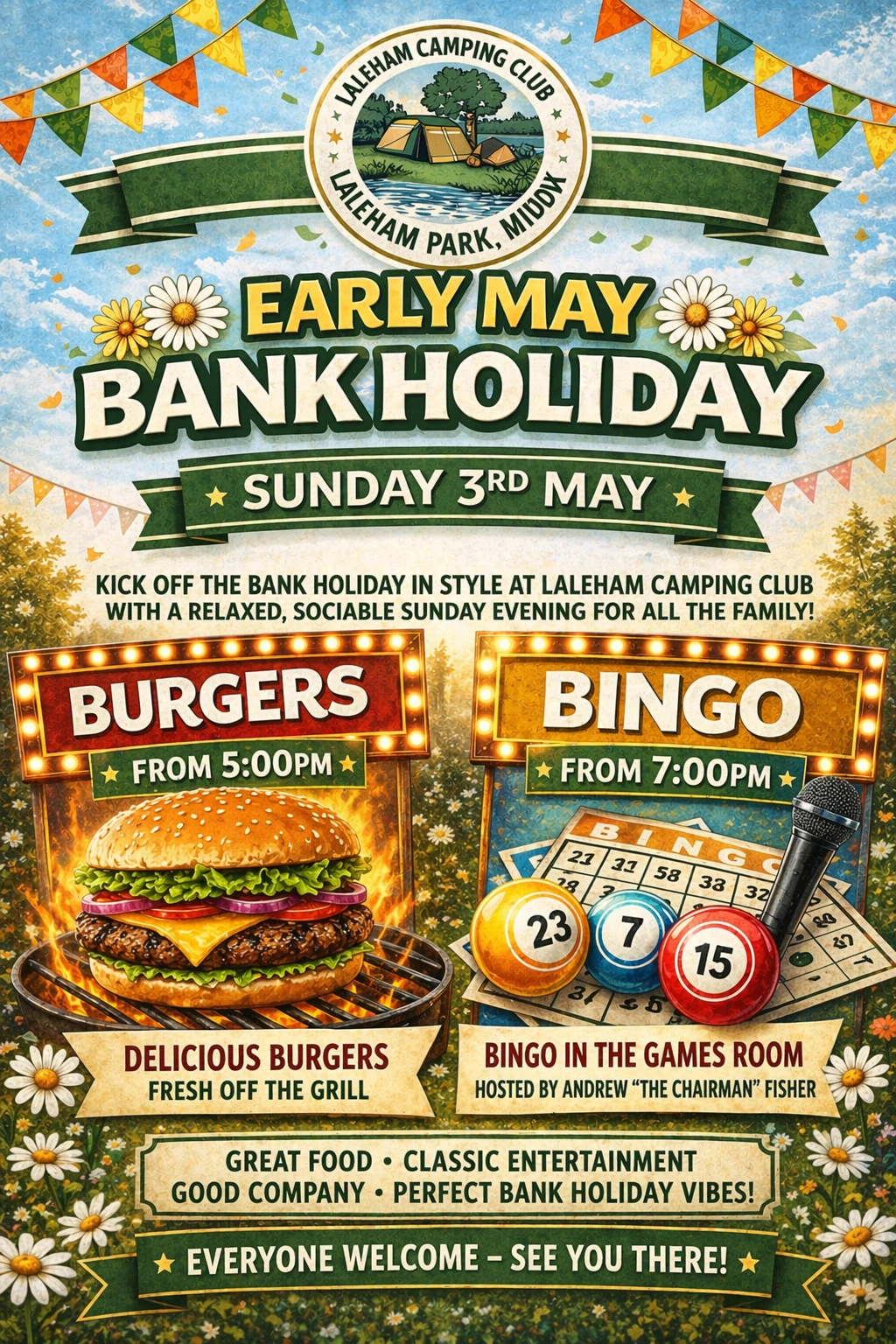 Kick off the Early May Bank Holiday in style at Laleham Camping Club with a relaxed and sociable Sunday evening packed with great food and classic entertainment.